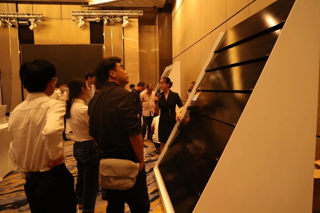 中場間歇,東方日升BIPV銷售經理童雪峰在超能頂、超能瓦展臺樣板前對產品方案與現場嘉賓進一步講解交流,答疑解惑,讓嘉賓對產品看得見、摸得著、懂得多。