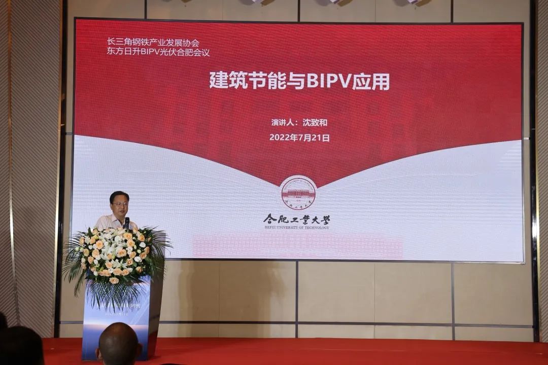 BIPV 千億級的藍海市場蘊含著無窮的機遇,但同時也需要產業上下游同心協力,共創共享,實現資源互通,優勢互補,才能實現生態共贏,協同發展。此次會議還特別邀請了合肥工業大學沈致和教授、博思格鍍面鋼品市場開發主管朱顯、中電國際中電官塘環保發展部經理江曉陽及安徽格潤綠建副總經理瞿春,分別從專家學者、上游建筑屋面鋼材料、投資人及合作伙伴角度闡述各自看法與觀點。