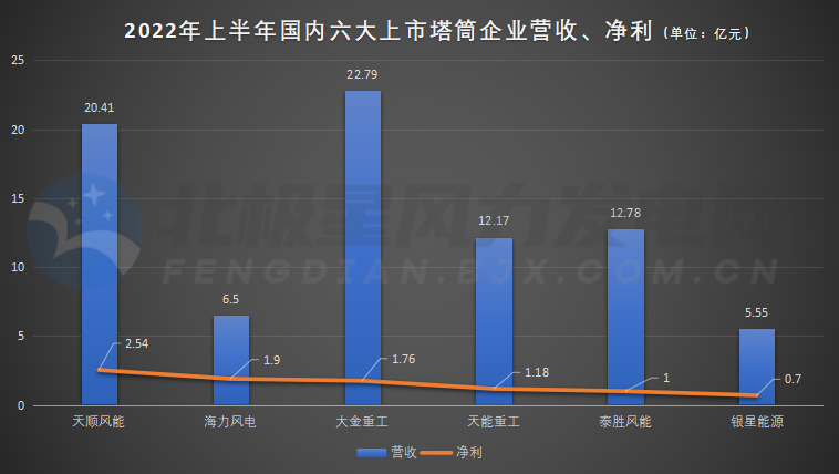 上半年,全國風電新增并網裝機1294萬千瓦,其中陸上風電新增裝機1206萬千瓦、海上風電新增裝機27萬千瓦。海上風電增長放緩,疊加平價背景下的利潤空間降低,疫情反復等影響,國內主要塔筒上市企業利潤增長均不及預期。近日,天順風能、大金重工、泰勝風能、天能重工、海力風電、銀星能源先后公布了2022年上半年成績單。