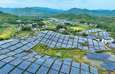江西省贛州市會(huì)昌縣莊口鎮(zhèn)黃沙村建成集荒地、屋頂、水面和雙軸式全自動(dòng)追光于一體的地面綜合示范電站,既為村集體帶來(lái)產(chǎn)業(yè)分紅,又為村民提供就業(yè)機(jī)會(huì)。