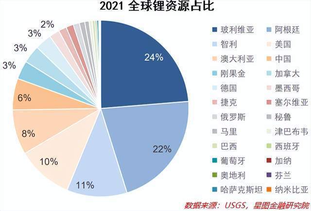 如果從儲(chǔ)量的角度看,全球并不缺鋰,截止2021年,全球鋰資源的總量為8900萬(wàn)噸,已探明的儲(chǔ)量為2200萬(wàn)噸(金屬鋰當(dāng)量,下同),且主要分布在南美鋰三角(智利、阿根廷、玻利維亞)。