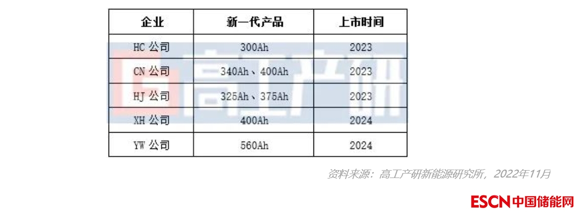 2023-2024年國內儲能電池企業上市型號規劃(部分)