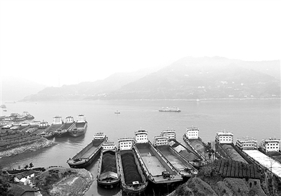 2月4日,大批船舶停靠在水位下降后的三峽大壩上游湖北省秭歸縣沙灣水域等待過閘。從2012年11月底開始,三峽樞紐在發電的同時,持續為下游進行生態補水,水庫水位也逐步下降,2013年2月3日晚首次低于170米。至此,三峽水庫已累計為下游生態補水約45億立方米。