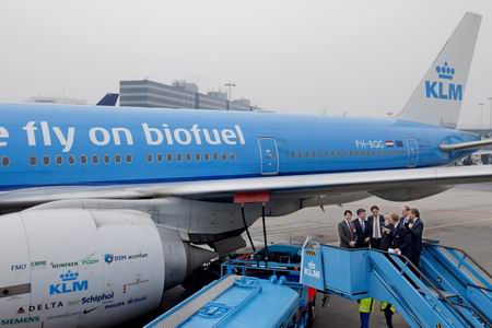當地時間下午1:30,荷蘭皇家航空公司啟動了從阿姆斯特丹到紐約的生物燃料航班,該客機所使用的生物燃料是以使用過的餐廚用油,即國內俗稱的“地溝油”為原料提煉加工而成。新華社發
