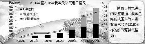 2013年,我國天然氣預計表觀消費量同比增長12.2%,供需總體偏緊;天然氣利用政策效果逐步顯現,城市燃氣消費量將繼續領漲;天然氣進口量快速增加,對外依存度達到32%左右,進口價格保持平穩。