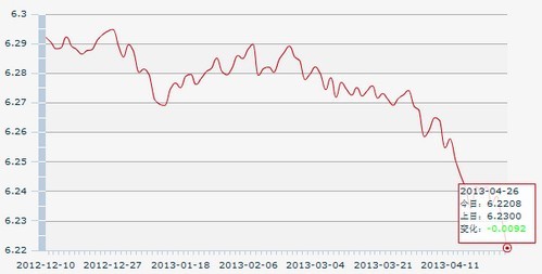 在嚴峻的經濟形勢下,人民幣匯率反而越來越堅挺,本周五(4月26日)達到1美元兌換6.2208元,再創匯改新高。在近鄰日本加速印鈔的情況下,人民幣的升值極不利于我國經濟的復蘇,當然,這從長期看倒逼我國經濟發展方式的轉型,但從短期看對經濟發展是巨大利空。