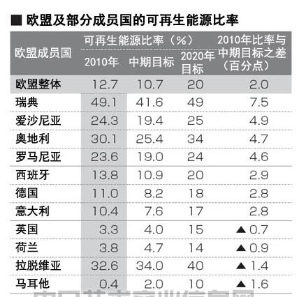 西班牙、德國及意大利等風力和太陽能發電裝機容量居歐洲前列的國家,也在2010年,達到了比中間目標值高近3個百分點的數值。