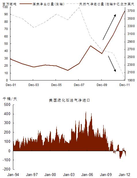 Williston盆地巴肯老油田是美國最主要的致密油產區,其產量從2003年的1萬bbl/d提高到2010年的45.8萬bbl/d,這其中絕大多數的增量來自頁巖油的開采。頁巖油產量上升在美國帶來的最直觀的的影響就是美國天然氣進口大幅下降和煤炭出口的大幅上升;天然氣凝析液產量的快速上升,美國LPG市場于2011/12年實現凈出口。
