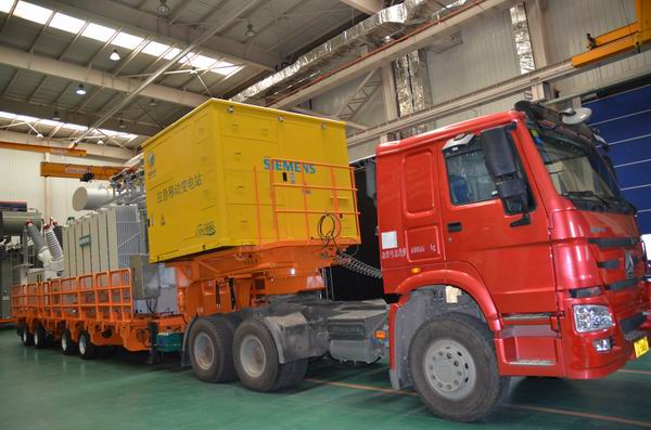 該移動變電站由西門子變壓器(武漢)有限公司提供變壓器并組裝,集合了西門子在輸電領域的多項產品,如避雷器、氣體絕緣開關(GIS)等。該先進的移動變電站具有結構緊湊、技術先進、設備可靠、運行安全和裝配快捷等特點,可快速應對緊急情況,在最短時間內恢復供電。移動變電站頻繁移動的特性要求設備具有高穩定性以及可靠性、兼容性和自動化,西門子所提供的設備可以充分滿足上述要求。對比之前的產品,該110千伏的移動變電站容量更大,并且可拆卸成三個模塊,使得運輸更為便利,使用更加靈活。盡管這些性能優化對變壓器的設計、尺寸、運輸及穩定性均提出了更大的挑戰,但西門子憑借先進技術和卓越質量成功完成產品生產與裝配,并創下了應急供電領域又一里程碑。