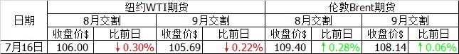 當日好消息不斷。美元匯率下跌,支撐油價上行。6月美國礦業生產指數比前一月上漲0.3%,小幅超出市場預期。美國住宅建設行業協會(NAHB)公布的7月住宅建設指數達到7年來的最高值。美國能源信息署(IEA)將于周三公布的石油庫存預計將繼續減少。然而由于美國股市當日行情走弱,WTI油價最終收跌。