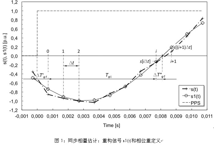 圖1總結了用上述過程所獲得的信號分析。其中虛點線表示用于估計同步相量的通用失真信號,連續實線表示時域重構的基頻信號,虛線表示PPS信號。