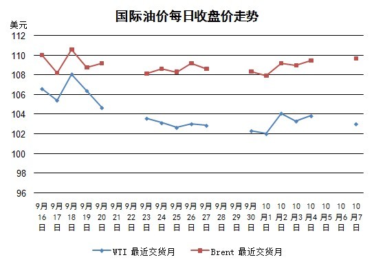 由于擔心美國出現債務違約,紐約商品交易所WTI價格小幅下跌。由于美國民主(奧巴馬)、共和兩黨的對立,美國政府機構關門的現狀仍在持續。如果10月17日民主、共和兩黨不能就提高債務上限達成一致,那么美國有可能陷入債務違約。