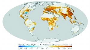 美國宇航局地球氣象臺最新繪制了一張地球空氣污染地圖,呈現了全球各地彌漫懸浮微粒的污染狀況。