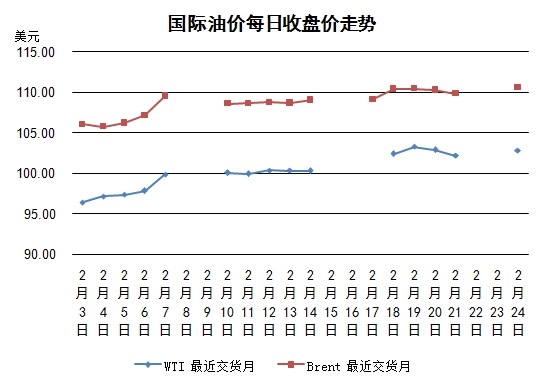市場預(yù)計WTI原油交易地點俄克拉荷馬州庫欣的庫存將會減少,買單增多。另外,德國IFO獨立經(jīng)濟(jì)研究所當(dāng)日公布的2月德國經(jīng)濟(jì)指數(shù)連續(xù)4個月增加,美國股市上漲,原油價格連帶上漲。布倫特油價則繼續(xù)受到利比亞和南蘇丹局勢的影響保持在高位。