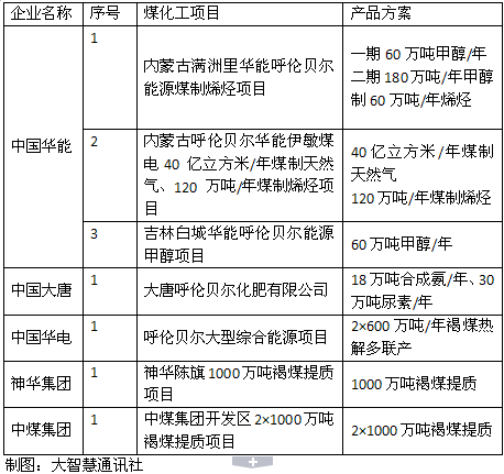 據大智慧通訊社不完全統計,伊敏煤化工基地的一些項目如下: