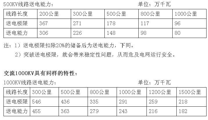 1000KV交流特高壓輸電技術(shù)有兩個(gè)致命缺陷:其一,隨著送電距離的增加,送電能力下降;其二,為了獲的電源支撐和維持電壓額定,線路每隔300~400公里必須設(shè)置變電站,這個(gè)工程投資會(huì)大大增加。由于上述兩個(gè)因素,使1000KV輸電成本大大提高:
