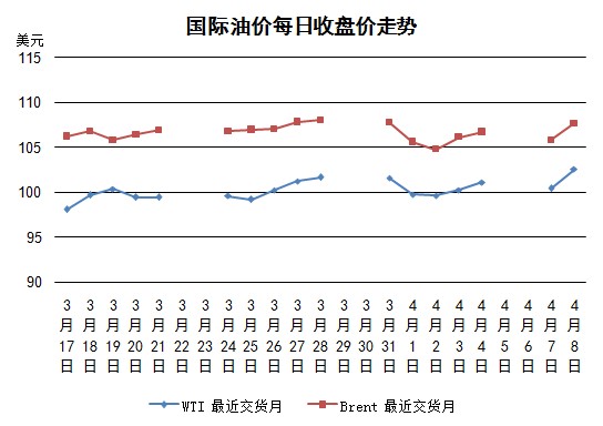 8日國際油價大漲,WTI5月期貨價格約為一個月以來最高值。烏克蘭東部頓涅茨克州、哈爾科夫州和盧甘斯克州數(shù)千名親俄民眾6日舉行抗議集會,頓涅茨克和哈爾科夫的一些集會者占領了州政府大樓,升起俄羅斯國旗,宣稱“獨立”成立“共和國”。俄羅斯外長拉夫羅夫7日警告烏克蘭當局不要在烏東部和南部地區(qū)對親俄示威者使用武力。拉夫羅夫表示,在烏克蘭東部地區(qū)動用武力可能會引發(fā)“內戰(zhàn)”。西方擔心俄羅斯可能會對烏克蘭進行新的武力干涉。