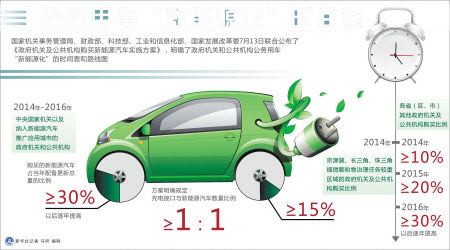 在此基礎(chǔ)上,方案提出,政府機(jī)關(guān)及公共機(jī)構(gòu)購買機(jī)動(dòng)車輛應(yīng)當(dāng)優(yōu)先選用新能源汽車。同時(shí)明確:2014年至2016年,中央國家機(jī)關(guān)以及納入新能源汽車推廣應(yīng)用城市的政府機(jī)關(guān)和公共機(jī)構(gòu),購買的新能源汽車占當(dāng)年配備更新總量的比例不低于30%,以后逐年提高。