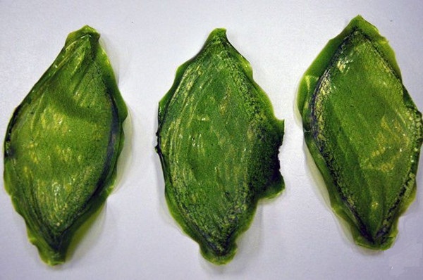 這個研究項目是英國皇家學(xué)院藝術(shù)創(chuàng)新設(shè)計工程課程(與美國塔斯夫大學(xué) Silk 實驗室合作)的一部分。我們可以從圖片里看到,葉綠體在絲蛋白模具里凝固,形成一片清新的綠油油的葉子,這也是 Silk Leaf 的特色之一。僅僅利用一點光源即可讓它釋放出氧氣。并且這種物質(zhì)能夠儲存更多的制氧材料。