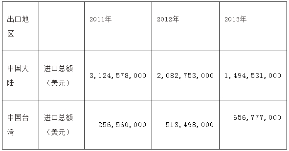 圖表1:2011年-2013年美國(guó)組件進(jìn)口情況