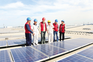 在位于開發(fā)區(qū)西區(qū)的長(zhǎng)城汽車天津產(chǎn)業(yè)園內(nèi),記者看到偌大的廠房屋頂上整齊排列著一塊塊長(zhǎng)約3.5米、寬約1米的深藍(lán)色太陽能光伏板,一眼望去顯得十分壯觀。這些作為光伏電站“駐扎地”的廠房屋頂都具有約5%的坡度,每一塊太陽能光伏板都是通過支架牢牢地“釘”在彩鋼屋頂上,十分結(jié)實(shí)。據(jù)了解,長(zhǎng)城汽車天津產(chǎn)業(yè)園占地面積約為5000畝,共有6個(gè)廠區(qū),此次工程利用其中四個(gè)廠區(qū)內(nèi)13座建筑閑置屋頂設(shè)置光伏電站,鋪設(shè)多晶硅光伏板共計(jì)81740塊,裝機(jī)總?cè)萘窟_(dá)到了20兆瓦,是目前天津市裝機(jī)容量最大的光伏電站。根據(jù)總裝機(jī)容量、傾斜面輻照量、系統(tǒng)效率等計(jì)算出光伏電站25年發(fā)電量綜合46054.3萬千瓦時(shí),年平均發(fā)電量為1842.17萬千瓦時(shí),峰值日照時(shí)數(shù)為920小時(shí)。電站建成后,每年可以提供清潔電力1842.17萬千瓦時(shí),與燃煤電廠相比,按平均供電煤耗360克/千瓦時(shí)計(jì)算,每年可以節(jié)約標(biāo)準(zhǔn)煤6719噸,相應(yīng)每年可減少多種大氣污染物的排放,其中減少二氧化硫排放量約121.2噸,氮氧化物60.3噸,二氧化碳1.7885噸,煙塵33.2噸。具有良好的節(jié)能效益、環(huán)境效益和社會(huì)效益。
