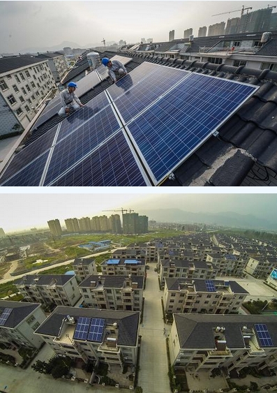 9月10日,東陽市橫店供電所的工作人員在檢查金馬村的一戶屋頂光伏發電設備,該村目前已經有26戶村民在自家屋頂安裝了屋頂光伏發電設備并投入使用。為了促進節能減排、發展綠色能源,從2014年6月份開始,浙江省東陽市政府相關部門與電力部門等共同啟動了首批“百戶居民家庭光伏發電”示范項目,列支200萬元資金用于引導和補貼100戶城鄉居民安裝屋頂光伏發電設備。國網東陽市供電公司提供給居民免費的計量電表、電量采集終端設備以及免費系統設計服務,同時簡化光伏發電并網流程,提高服務效率。目前東陽市已經安裝、并網約30戶居民家庭的屋頂光伏發電裝置,其他用戶也在逐步進入安裝調試階段。