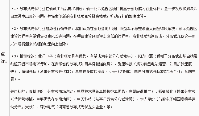 二、行業(yè)新聞:分布式光伏示范區(qū)再出政策,行業(yè)趨勢(shì)性行情來臨
