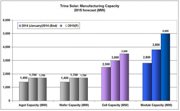 然而,鑒于大多數產能增加集中在組件裝配,實現最高產量增加的最低資本支出應該導致天合光能明年與2014年支出金額相似。