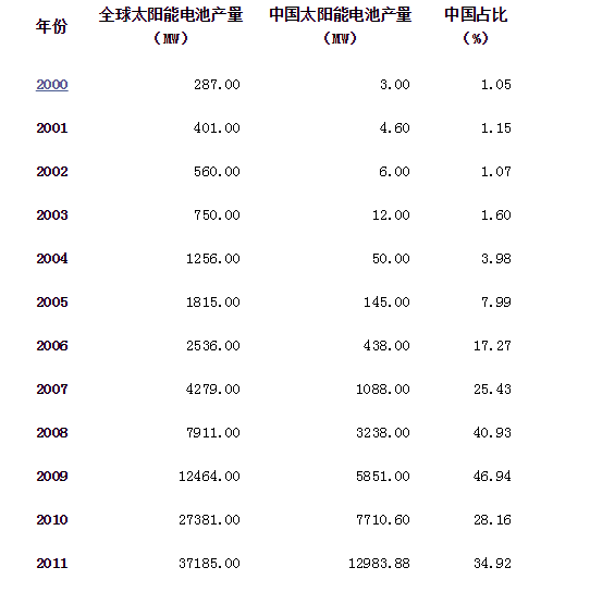 表1 近年來我國(guó)光伏電池產(chǎn)量增長(zhǎng)態(tài)勢(shì)及與全球產(chǎn)量比較