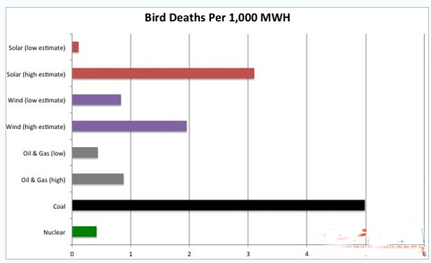 圖表:美國各種發電方式對致死鳥類的影響