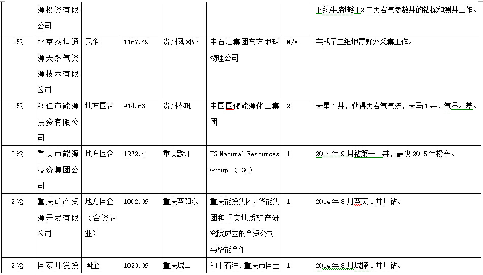 (三)第二輪中標企業進展情況(16家企業,19個區塊);