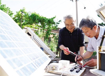原天津發(fā)電設(shè)備總廠退休工程師趙國(guó)本,退休后在企業(yè)的資助下,開始全自動(dòng)跟蹤太陽(yáng)能光伏發(fā)電設(shè)備的研發(fā)之路。經(jīng)過5年的研制,“全自動(dòng)跟蹤太陽(yáng)能光伏發(fā)電分布式(并網(wǎng))終端成套設(shè)備”技術(shù)成熟,可以轉(zhuǎn)化為產(chǎn)品。這一發(fā)明可自動(dòng)跟蹤太陽(yáng)光源,使聚光裝置全天候與太陽(yáng)保持垂直角度,光能轉(zhuǎn)化率是傳統(tǒng)轉(zhuǎn)化率的2倍,并且操作簡(jiǎn)單,獲得國(guó)家專利證書。圖為5月18日,73歲的趙國(guó)本在調(diào)試全自動(dòng)跟蹤太陽(yáng)能光伏發(fā)電設(shè)備。新華社記者 張晨霖?cái)z