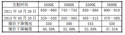 據秦皇島煤炭市場發布的信息顯示,2015年5月20日,秦皇島海運煤炭交易市場發布的環渤海動力煤價格指數(環渤海地區發熱量5500大卡動力煤的綜合平均價格)報收于414元/噸,報告期(2015年5月13日至5月19日)比前一報告期下降了2元/噸。而四年前報告周期(2011年10月26日至11月1日),環渤海地區港口平倉的發熱量5500大卡市場動力煤的綜合平均價格報收853元/噸,與前一報告周期持平,煤價處于相對穩定狀態。從整體情況來看,按照煤炭價格指數測算,秦皇島平倉的發熱量5500大卡的市場動力煤綜合平均價格下滑439元/噸,從數字上來看煤炭價格下滑了51.47%,可謂是煤炭價格攔腰斬斷;實際上要超過這個下滑幅度。