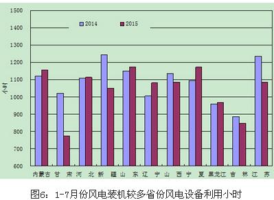 分類型看,1-7月份,全國水電設備平均利用小時1911小時,同比增加59小時;水電裝機容量超過1000萬千瓦的7個省份中,湖南、青海和四川同比分別下降210小時、71小時和31小時,云南增加39小時,貴州、廣西和湖北同比分別增加555小時、360小時和171小時。全國火電設備平均利用小時2531小時,同比下降259小時,降幅比2014年同期擴大203小時;其中青海3202小時,海南、寧夏和江蘇超過3000小時;吉林、四川、云南和西藏火電設備利用小時低于2000小時,分別為1900小時、1768小時、1051小時和55小時;與上年同期相比,共有28個省份火電利用小時同比下降,其中,云南和北京下降超過600小時。全國核電設備平均利用小時4183小時,同比上升114小時。全國風電設備平均利用小時1107小時,同比下降10小時。