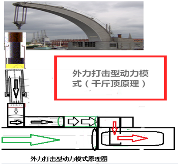 上圖的外力打擊動(dòng)力模式圖示,是一擊而空模式,它的作用原理其實(shí)還是內(nèi)外環(huán)境的壓力差問題,外力打擊動(dòng)力模式,使一切困難變得容易。一擊而空,可以做到需要多少力,便給多少力,供應(yīng)遠(yuǎn)遠(yuǎn)大于需求,這對(duì)于外力打擊動(dòng)力模式來說,并不是不可思議的事。當(dāng)然,大家都知道了,海底100米處的水壓有多大嗎?每平米至少100噸。從理論上說,確實(shí)是對(duì)的。但是根據(jù)同樣水深的水壓相等規(guī)律,即使水壓再大,內(nèi)外環(huán)境的壓力大致相等,基本抵消掉了。為什么有些魚類可以在海底幾千米的深處自由游泳而無任何問題呢?這就說明了一個(gè)內(nèi)外環(huán)境的平衡問題,事實(shí)上由于抵消的原因,幾乎不存在這個(gè)貌似泰山壓頂?shù)膯栴},或者根本不像網(wǎng)友想象得這么嚴(yán)重,這只不過是一個(gè)壓力差的問題。當(dāng)水庫滿水時(shí),根據(jù)同等水深壓強(qiáng)相等原理,內(nèi)外壓差其實(shí)是平衡的。退一步說,即使沒有內(nèi)外平衡抵消的存在,區(qū)區(qū)100噸,在一擊而空模式面前,也根本不算什么的。目前世界上已經(jīng)存在的最大起重機(jī)已經(jīng)達(dá)到輕松提起4000噸的重量,是我國(guó)產(chǎn)的。大家自己算一算,莫說100噸,即使是1000噸,都可迎刃而解,又算什么呢?