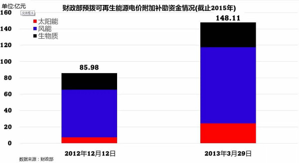 能豆君:2014年中央財政可再生能源發展基金收入的基金只有不到500億元的規模,相比高速增長的可再生能源裝機,基金的缺口越來越大。
