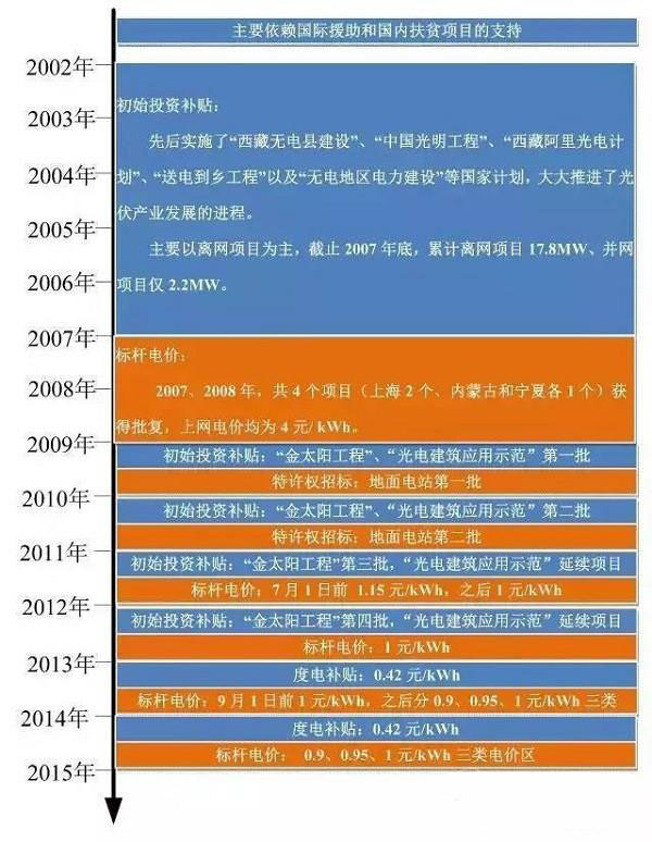 先用一張圖來說明一下,我國對光伏產(chǎn)業(yè)的補(bǔ)貼歷程。