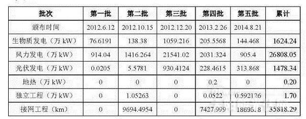 從上表可以看出,五批項目中,容量最大的是風(fēng)電,為268.1GW;其次是生物質(zhì)能發(fā)電,為16.2GW;光伏的容量僅為14.8GW。