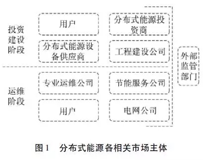 從市場角度看,各市場主體所處的市場地位不同,所具有的權責也存在差別。如,外部監(jiān)管部門(政府部門、行業(yè)協(xié)會等)主要為分布式能源的發(fā)展提供政策保障和外部管制;分布式能源投資商、金融機構、設備供應商、工程建設公司等主體的合理投資和規(guī)范化建設共同推動了分布式能源的快速發(fā)展;專業(yè)運維公司、節(jié)能服務公司、用戶以及電網(wǎng)公司間的有效協(xié)作確保了分布式能源系統(tǒng)的正常運營。