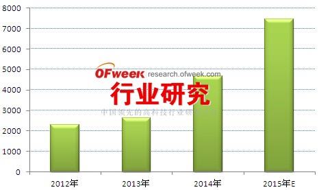圖表3:2012-2015年中國分布式光伏發電累計裝機容量預測(單位:MW)