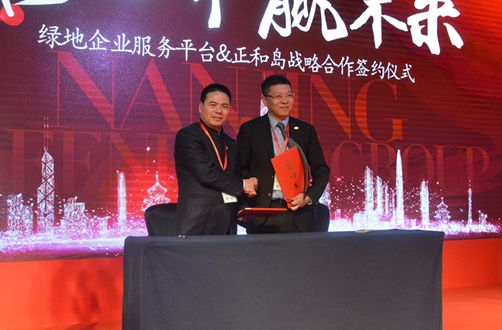 蔣錫培(左)代表正和島與綠地企業服務平臺簽約