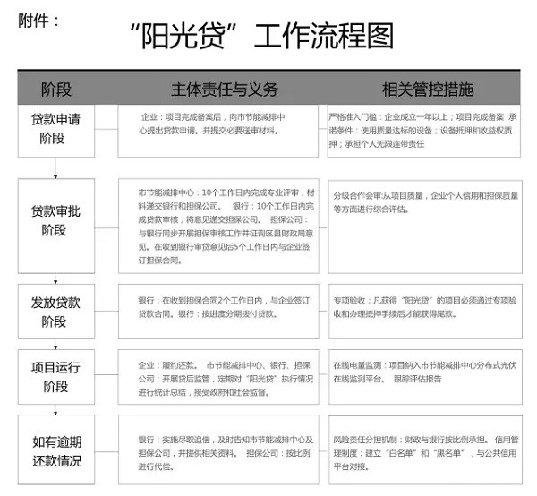 為加快破解當前分布式光伏發展面臨的融資難題,率先培育適應新能源發展的金融服務體系,根據《國務院關于促進光伏產業健康發展的指導意見》、《上海市中小企業融資擔保專項資金管理暫行辦法》等文件,市發展改革委、市財政局組織開展分布式光伏“陽光貸”有關工作,現將有關內容通知如下:
