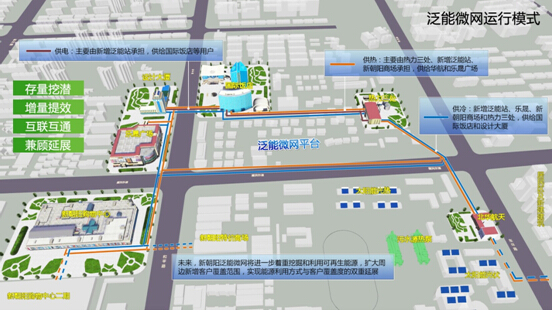 為解決新朝陽區(qū)塊能源供需問題,廊坊市啟動新朝陽泛能微網(wǎng)項目,這不僅是當(dāng)?shù)卣ν频拇髿馕廴痉乐?ldquo;藍天行動”中的重要組成部分,也是國家區(qū)域分布式能源示范項目。該項目運用系統(tǒng)能效理論和泛能網(wǎng)技術(shù),實現(xiàn)新朝陽周邊用戶互聯(lián)互通,提高已有供用能設(shè)施利用率,并融入各類清潔能源和高效利用技術(shù),助力區(qū)域整體能效提升和社會環(huán)保效應(yīng)價值最大化。