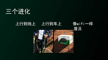 邵丹薇力陳當前產業四大弊端——待機電損高、維護成本高、投資成本大、用戶體驗差,并針對性的提出以移動充電樁、移動儲能充電和移動救援儲能車三個技術分化來改善這些問題。其中移動充電樁方案將經過三個進化:充電樁做在線上→充電樁做到車上→充電插座可以像WiFi一樣地普及。
