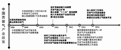 國(guó)家高度重視頁巖氣產(chǎn)業(yè)的發(fā)展,將其確定為戰(zhàn)略性新興產(chǎn)業(yè)并在宏觀層面給予了配套政策。從2008年至今,國(guó)家發(fā)改委、財(cái)政部、國(guó)土資源部、國(guó)家能源局已陸續(xù)從發(fā)展規(guī)劃、政策補(bǔ)貼、產(chǎn)業(yè)政策等方面對(duì)頁巖氣發(fā)展給予積極支持。