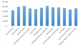 雷丁和沙斯塔/喀斯喀特地區盡管太陽能支付最大,每千瓦裝機量支付成本最少為補貼后 3,178美元/kW。