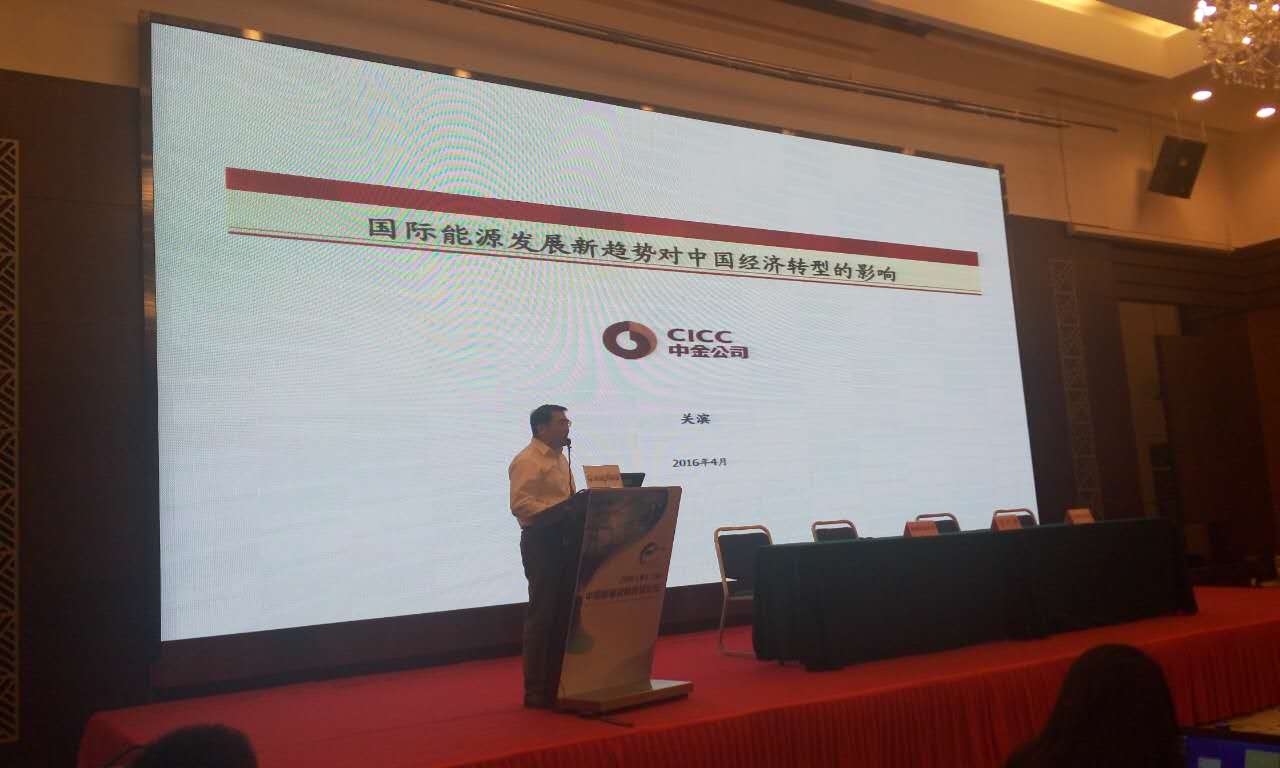 中國國際金融有限公司研究部董事總經(jīng)理關(guān)濱做主題演講:國際能源發(fā)展新趨勢對中國經(jīng)濟轉(zhuǎn)型的影響。