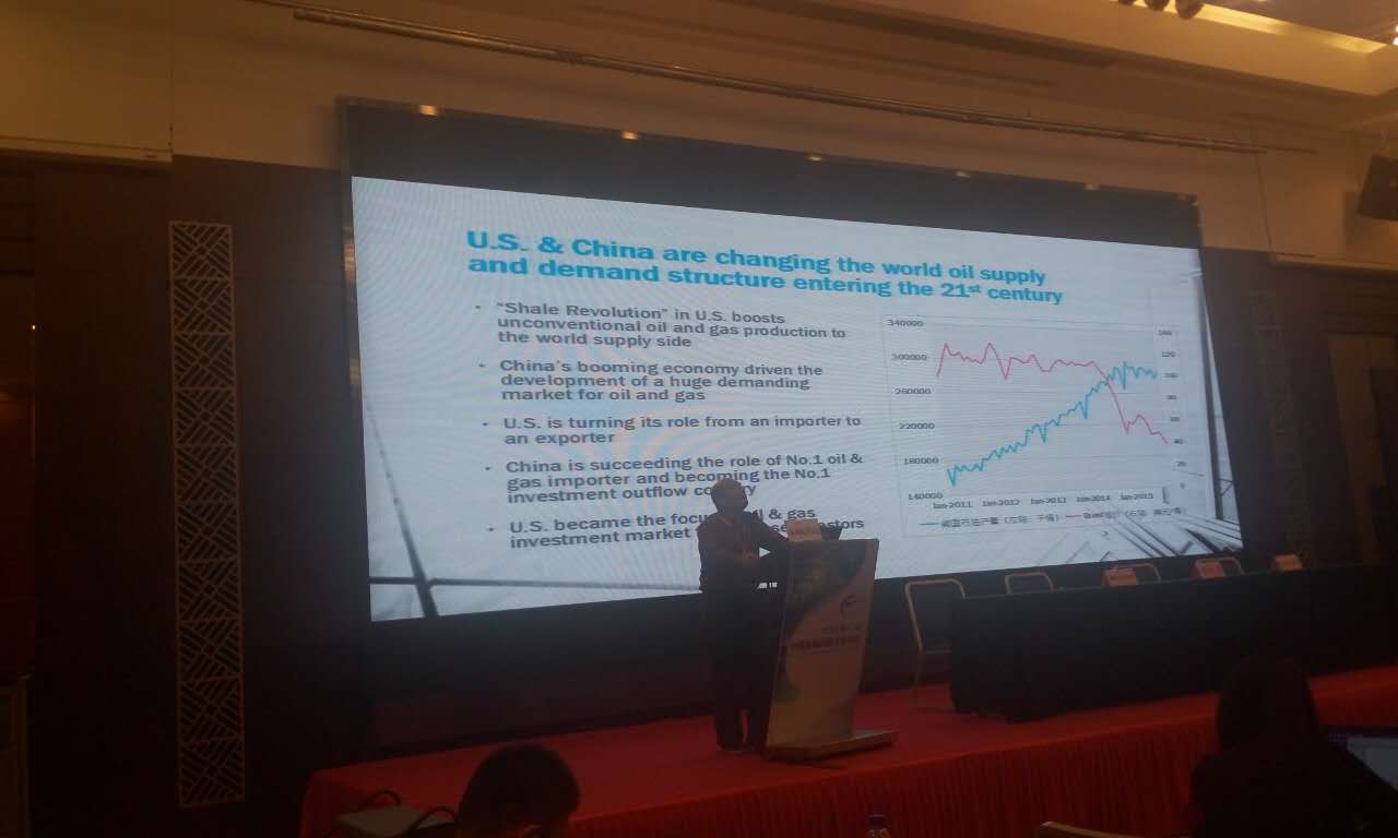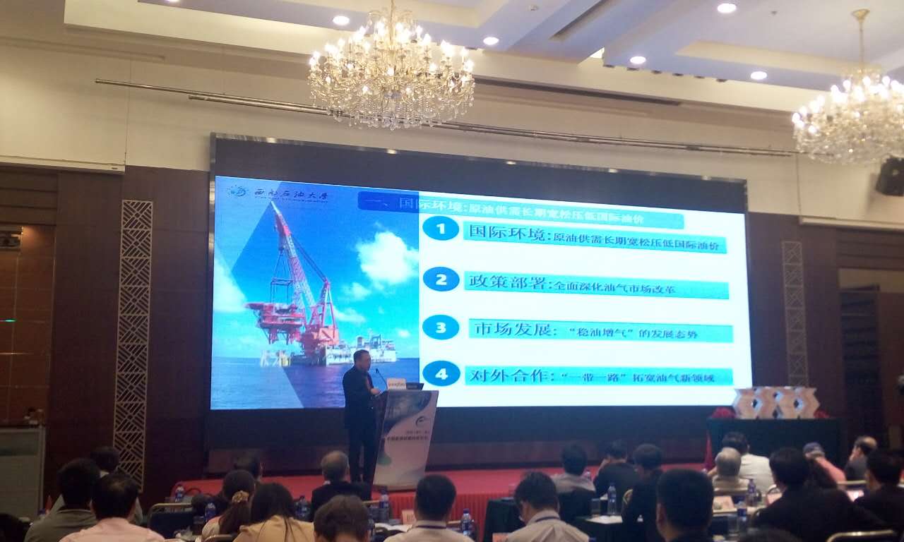 西南石油大學副廳級調(diào)研員何沙做主題演講,題目是:新常態(tài)下中國油氣行業(yè)現(xiàn)狀及發(fā)展趨勢探討。