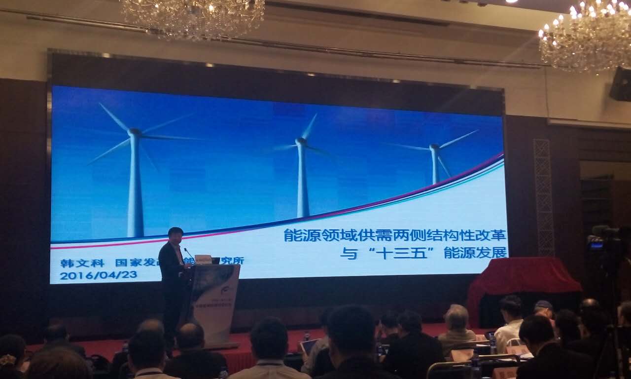 國家發(fā)改委能源研究所所長、研究員韓文科做主題演講,題目是:“十三五”能源規(guī)劃如何適應(yīng)新常態(tài)。