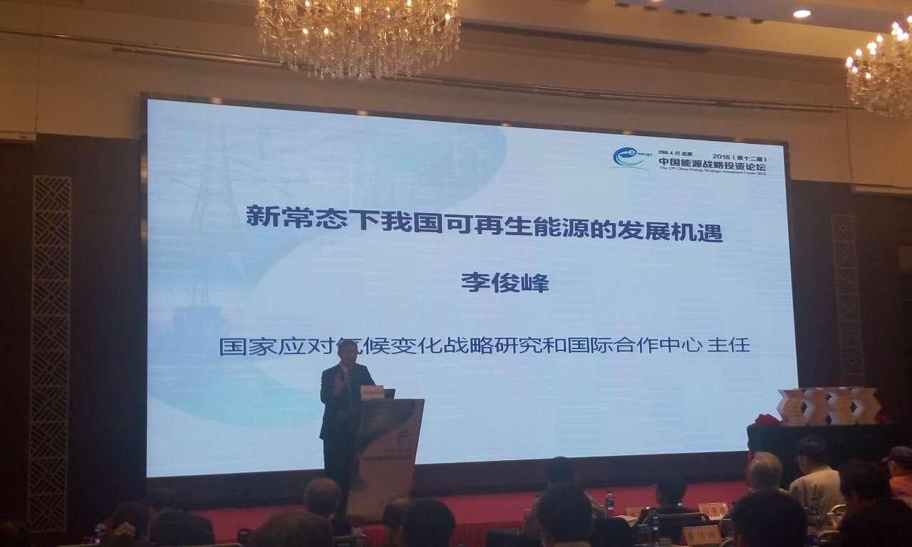 國家應(yīng)對氣候變化戰(zhàn)略研究和國際合作中心主任李俊峰做主題演講,題目是新常態(tài)下我國可再生能源的發(fā)展機遇。